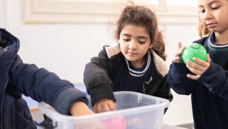 Giggles over balls. Shared excitement at the table. In our KG classrooms, hands on play teaches sharing, colors, and confidence, setting the foundation for lifelong learners.